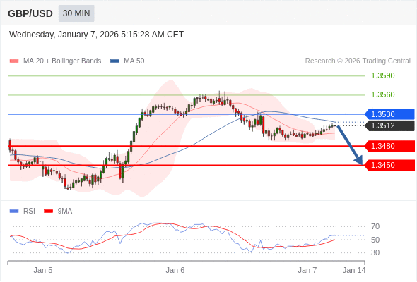 在 1.3530 之下,看跌,目标价位为 1.3480 ,然后为 1.3450 。