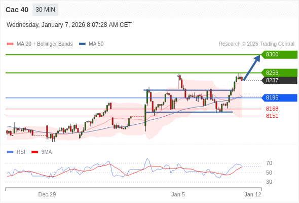 Cac 40 当日内: 上升趋势。