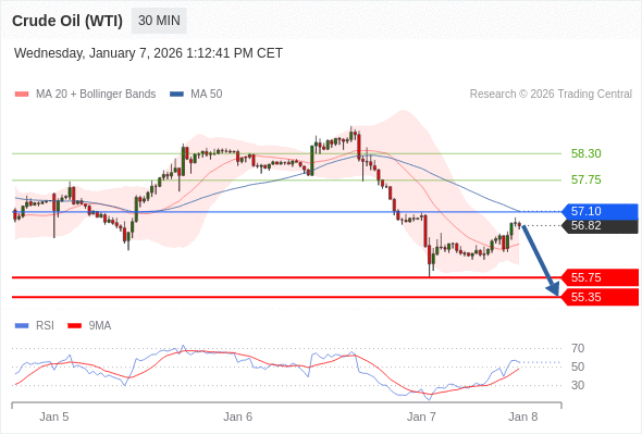在 57.10 之下,看跌,目标价位为 55.75 ,然后为 55.35 。