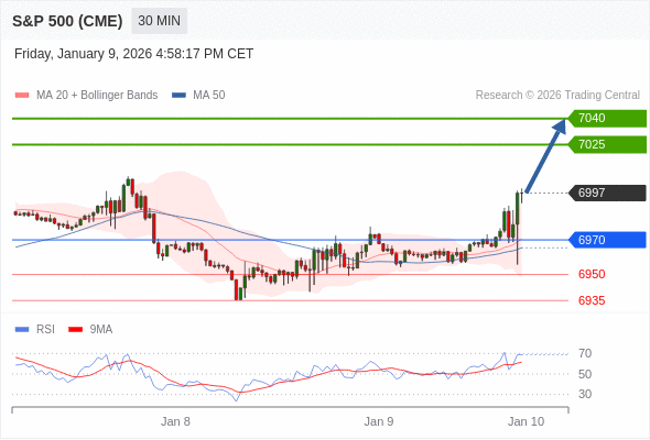 在 6970 之上,看涨,目标价位为 7025 ,然后为 7040 。