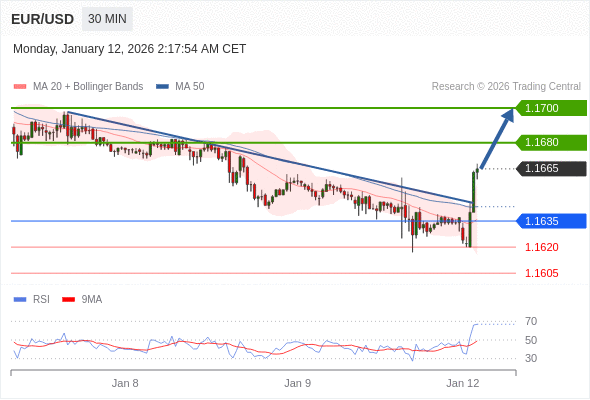 在 1.1635 之上,看涨,目标价位为 1.1680 ,然后为 1.1700 。