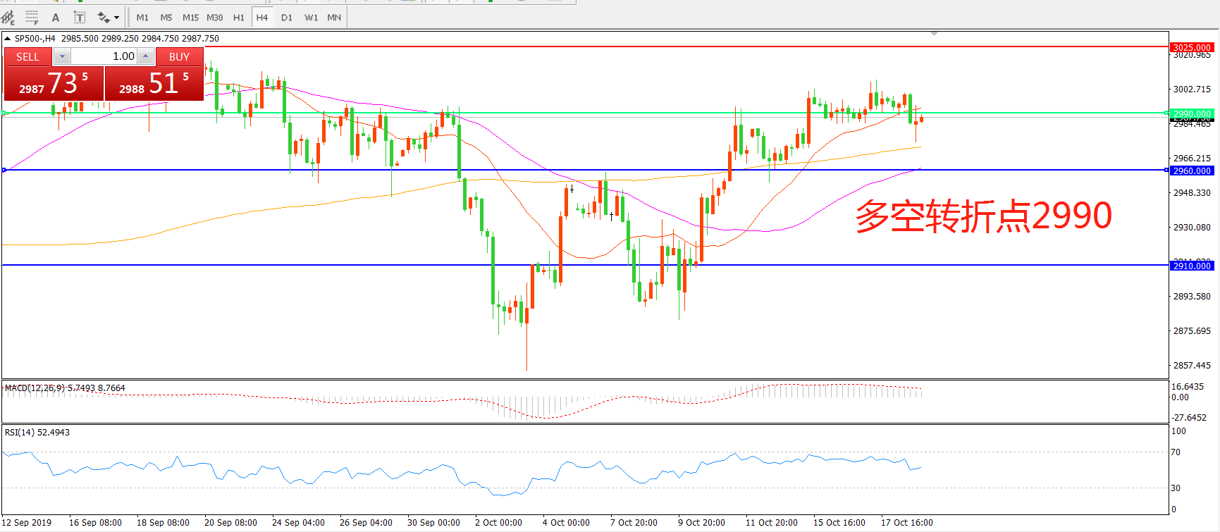 多空转折点:2990.00