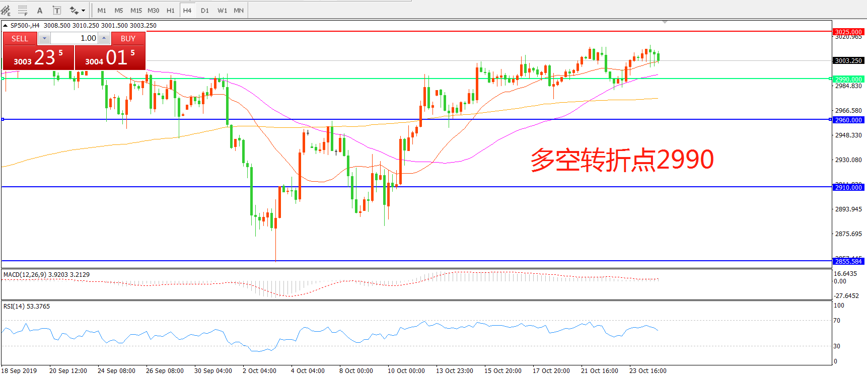 多空转折点:2990.00