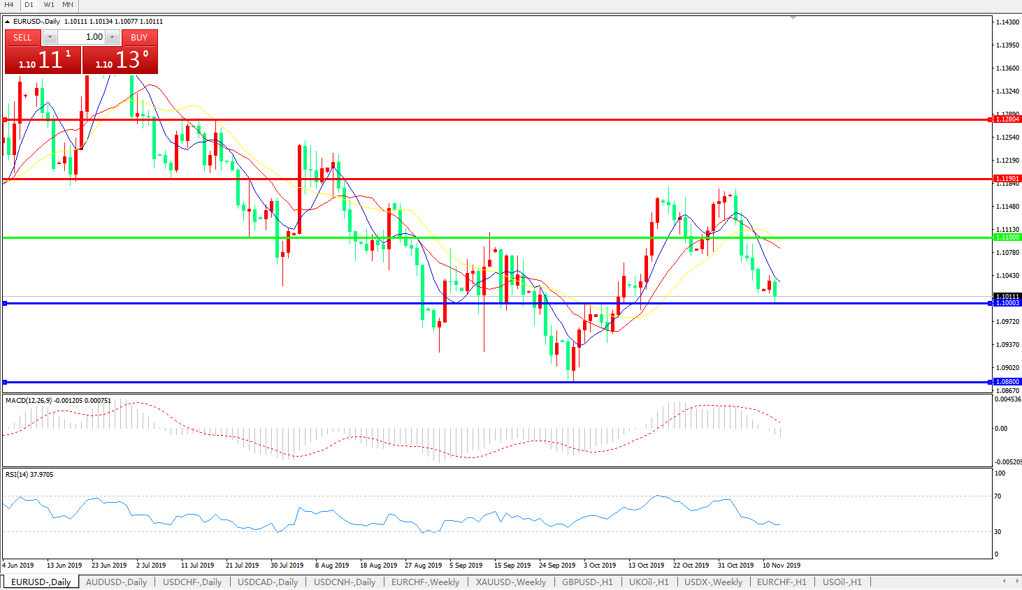 交易策略:1.1100下方看跌,目标1.1000、1.0880