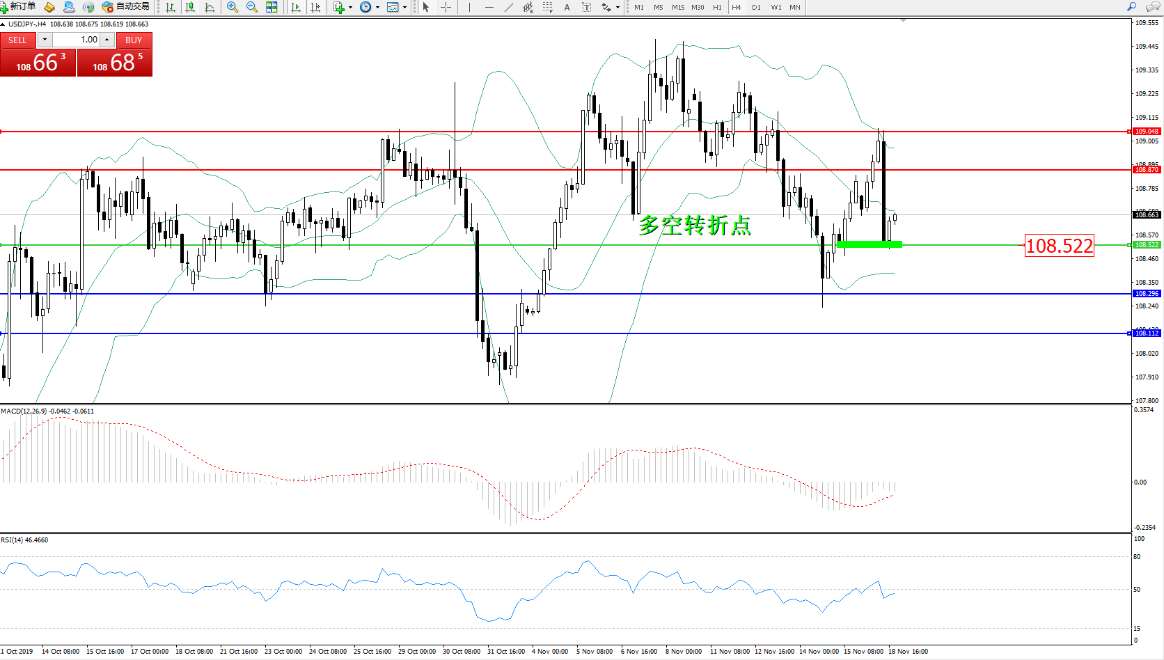 技术点评:宽幅震荡下行走势持续,处于布林带指标通道内上下轨区间不断巨震,弱势纠结于中轨下方整理,MACD指标处于0轴线下方弱势整理平移中, RSI指标纠结于50均衡线来回徘徊;