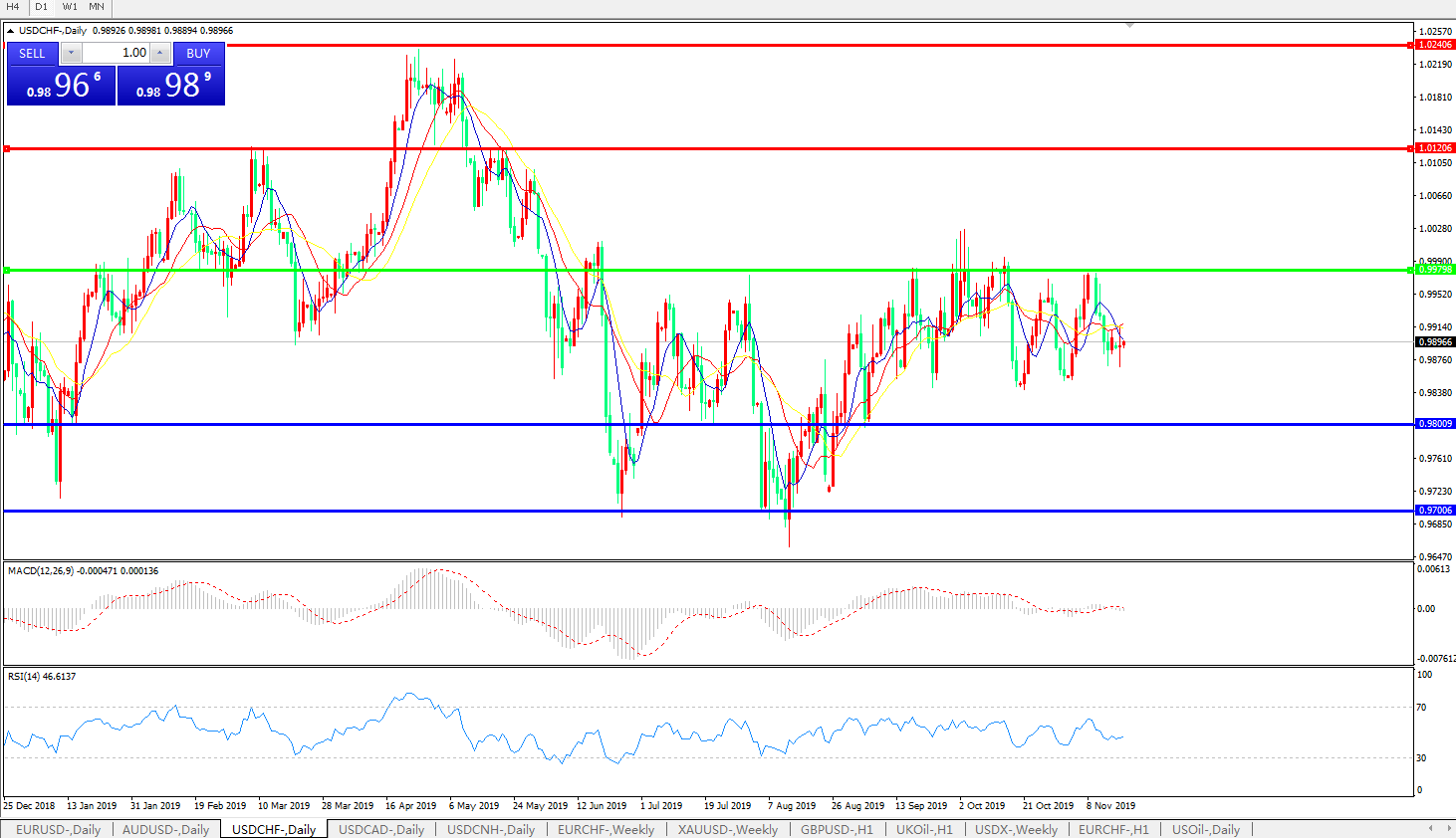 交易策略:0.9980下方看跌,目标0.9800、0.9700