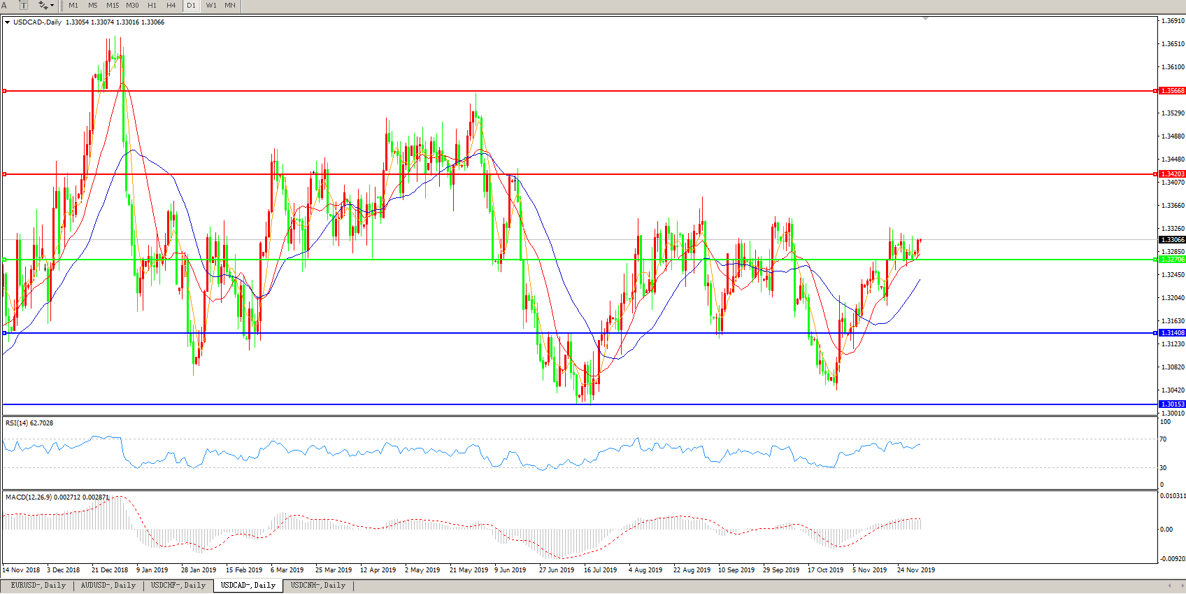 技术面简析:日线图均线维持攻势,汇价多空转折区域上方维持偏强整理,MACD运行于0轴上方且量能维持放量迹象,RSI震荡走低,短期汇价需关注1.3270关口争夺,预计汇价存进一步上行空间。