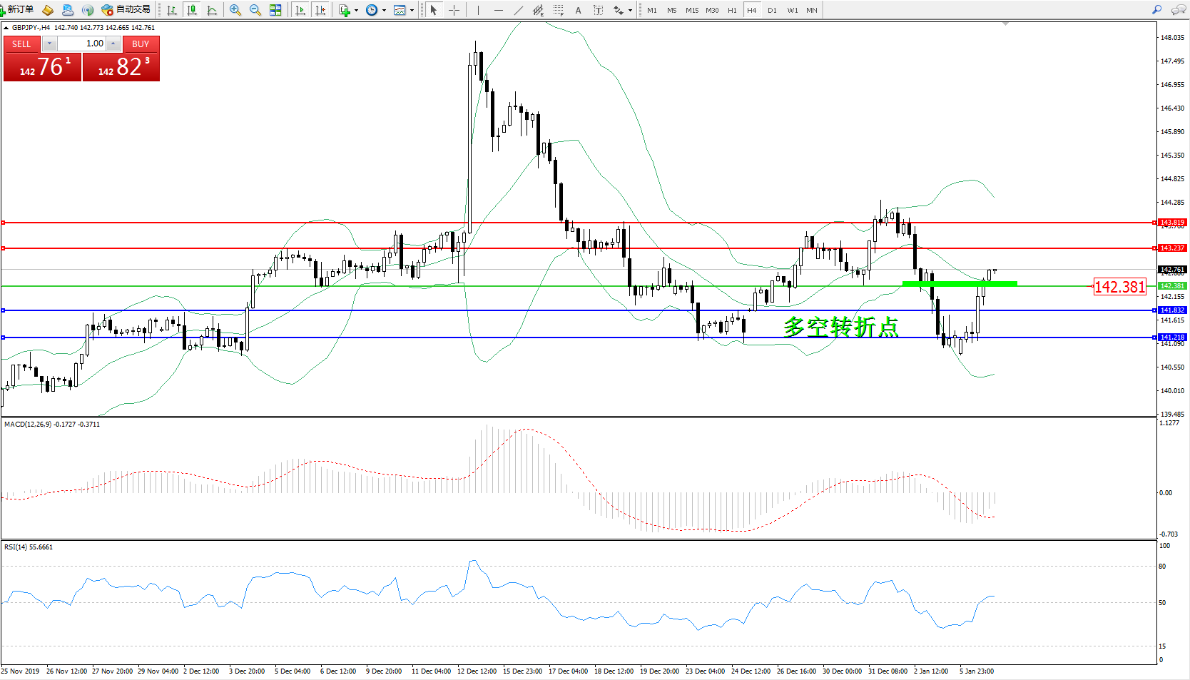 交易策略:142.381上方看涨,目标143.237、143.819