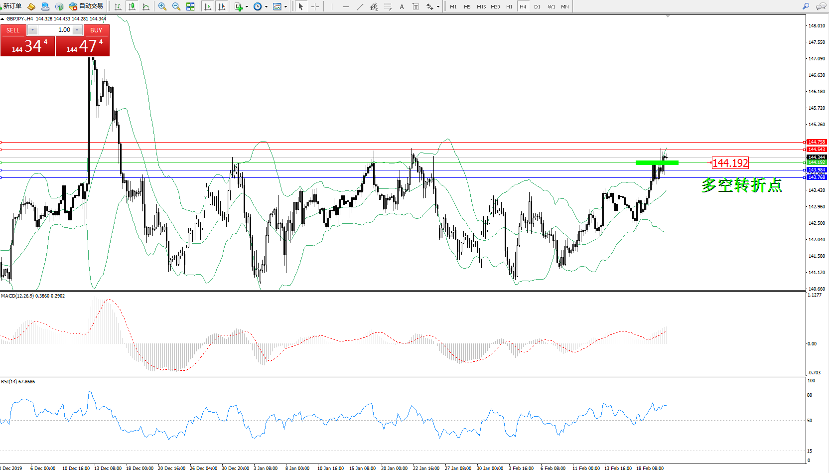 交易策略:144.192上方看涨,目标144.543144.758