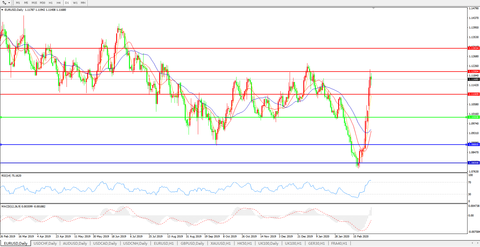 欧元兑美元EURUSD   日线图: