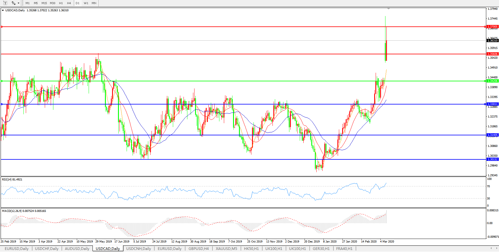 美元兑加元USDCAD    日线图: