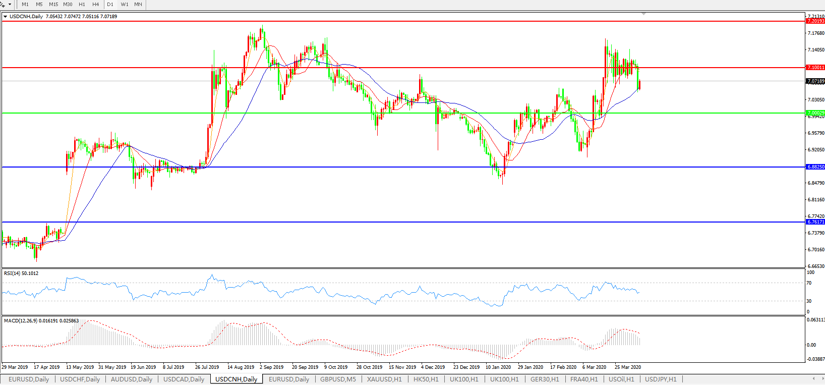 技术面简析:日图均线整体呈多头排列,汇价昨日大跌回落至30日均线附近,MACD运行于0轴上方但量能逐步萎缩,RSI维持震荡走跌,预计短期汇价将7.0关口上方宽幅整理。