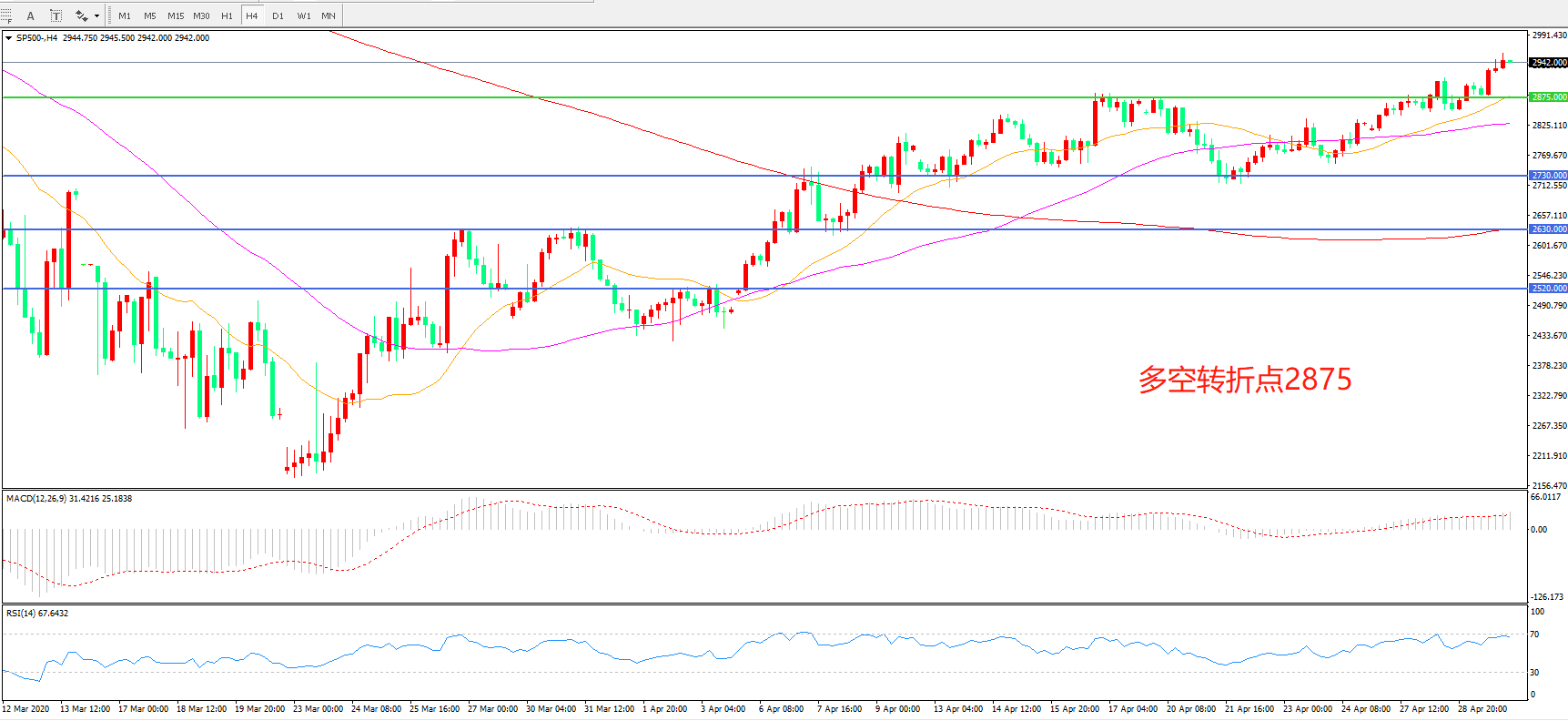 标普500 SP500   4小时图