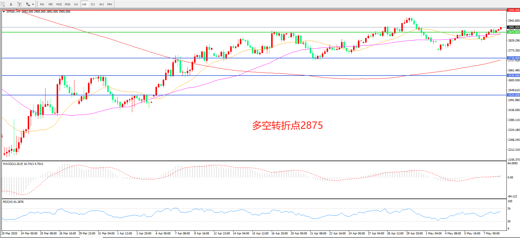 标普500 SP500   4小时图