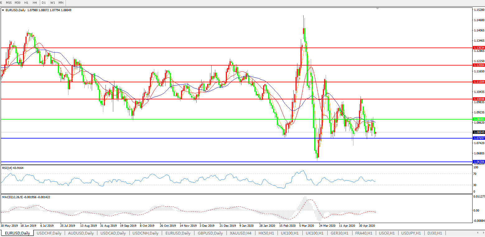 交易策略:1.0880下方看跌,目标1.0770、1.0630