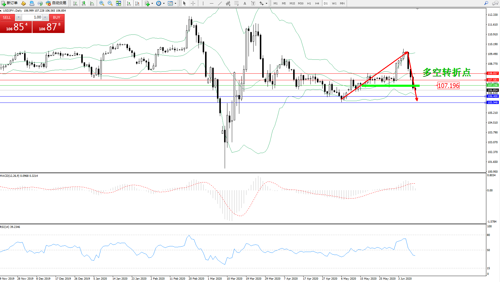 美元兑日元下跌0.23%,至106.87,一度下跌0.5%,创1个月以来最低。日元看涨需求和交叉汇率相关卖盘已经推动美元兑日元四连跌,关键支撑在一目均衡图云底106.45以及之后的106.00。主要央行纷纷投入收益率曲线控制这块未知领域,日本身为这个非正统政策的先驱者,却愈来愈难以全心专注于自身的收益率目标,反而打算回到印钞的老路数,来帮助受疫情打击的企业,日本央行在下周的政策会议上料将不会扩大刺激计划,且近几个月推出的一连串缓解新冠危机的工具也预料不会有重大改变。日本央行黑田东彦强调,央行决心持续向市场注入大量资金,以帮助企业存活并保住员工饭碗。日本央行近期重点仍将是维持市场稳定,并缓解企业融资压力,降息仍是日本央行的工具之一。但当前或许并不是最可能的选项。虽然日本央行会对经济前景面临的风险发出警告,但可能会维持其经济评估,即经济将逐步从疫情带来的打击中复苏。各种刺激工具的出台,令日本央行在与市场沟通和引导市场预期方面遭遇挑战。重新强调日本央行印钞的规模,使得其之后很难缩减该计划的规模,市场可能将此举解读为收紧政策.