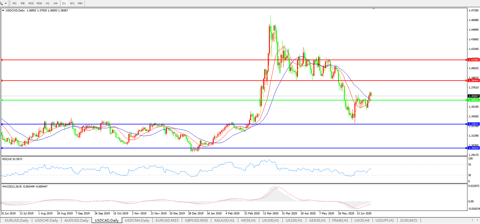 美元兑加元USDCAD 日线图: