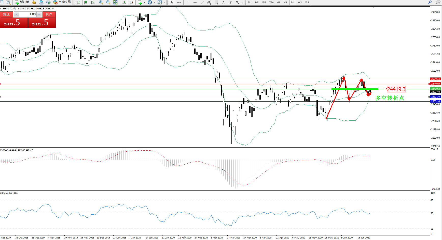 恒指HK50 ——日K线图显示: