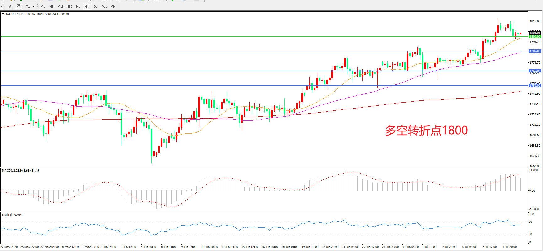 交易策略:在1800.00之上看涨,目标1820.00 1845.00