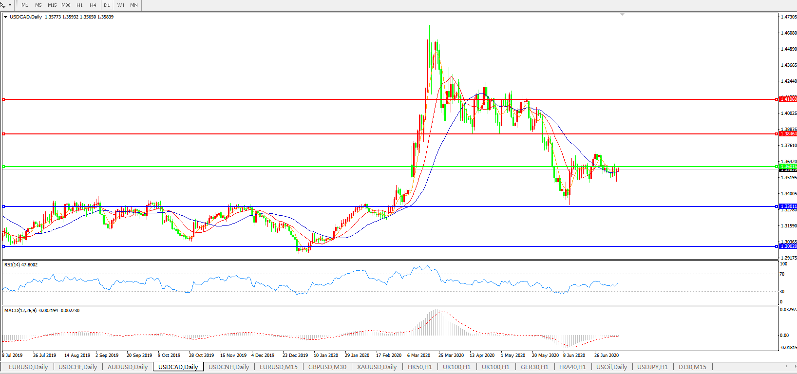 美元兑加元USDCAD 日线图: