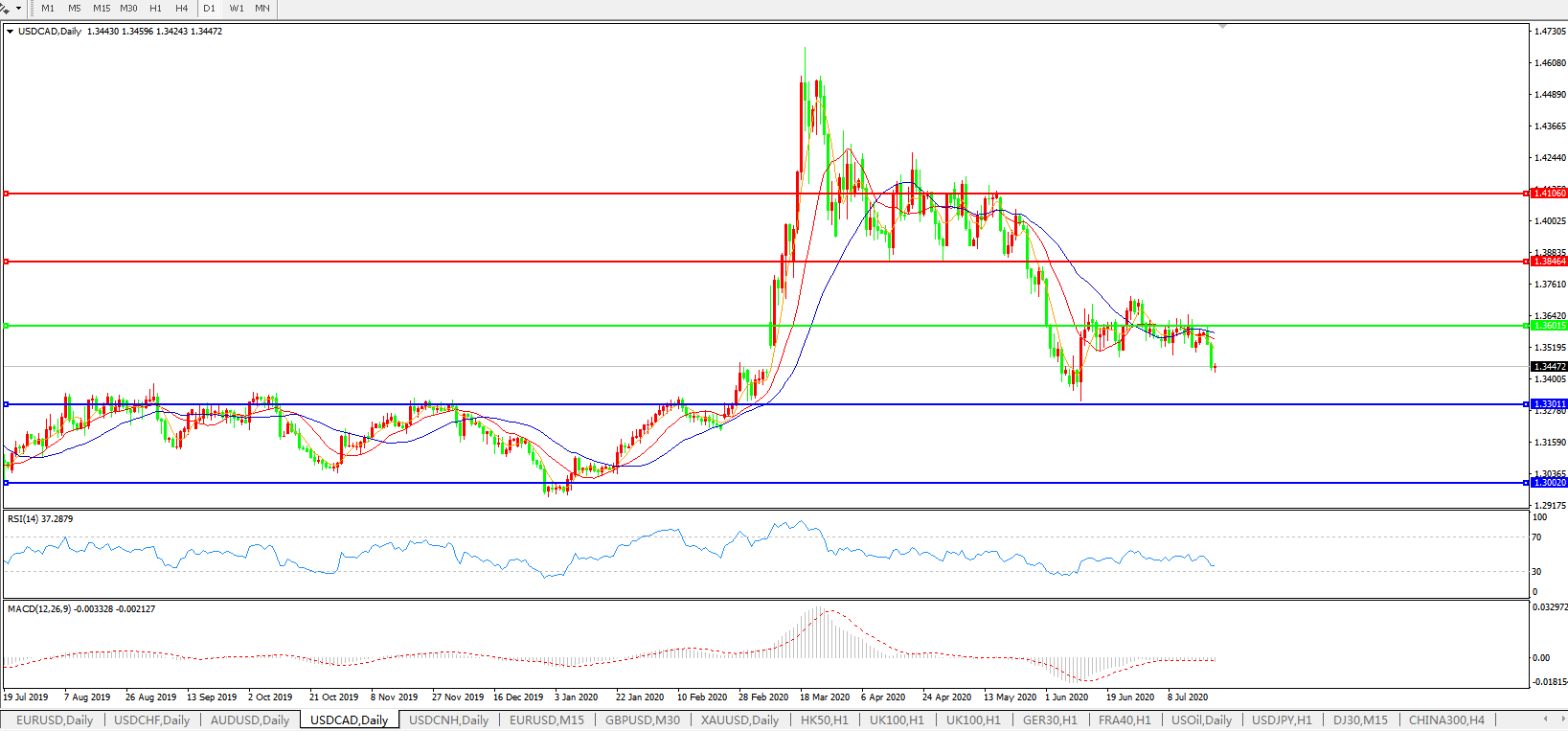 美元兑加元USDCAD    日线图:
