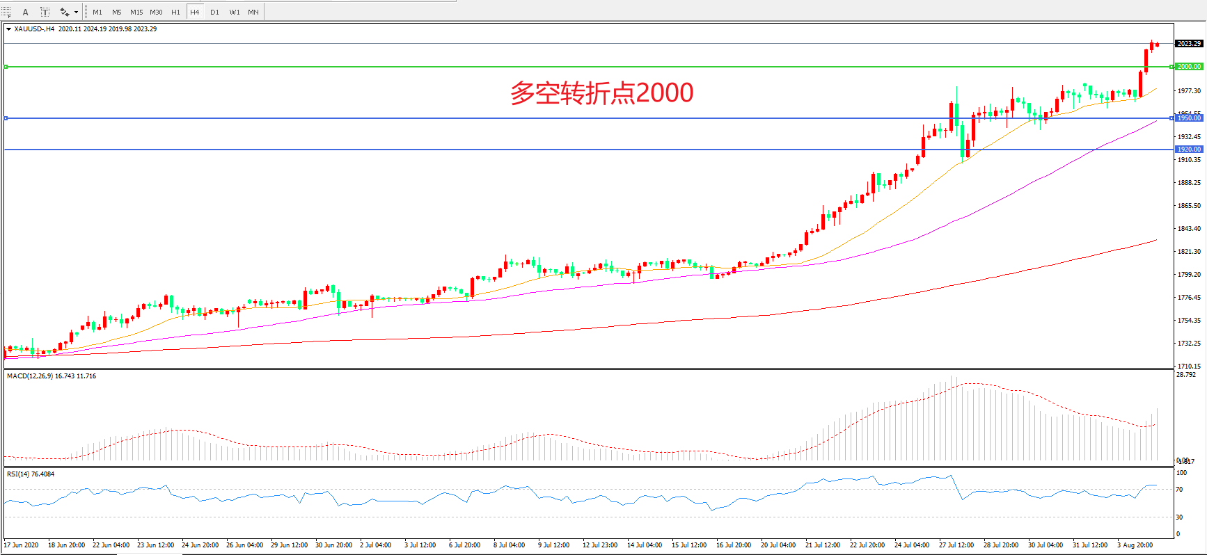 交易策略:在2000.00之上看涨,目标2030.00 2050.00