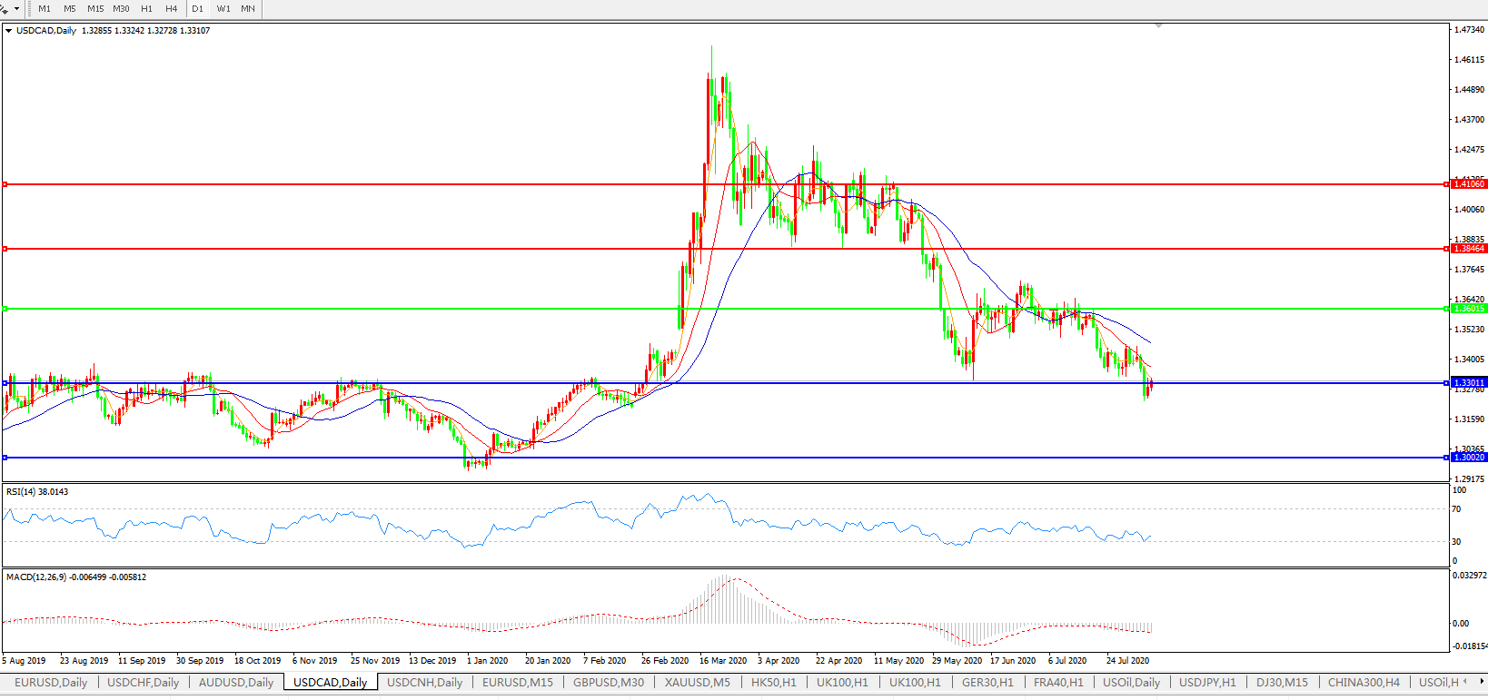 美元兑加元USDCAD 日线图: