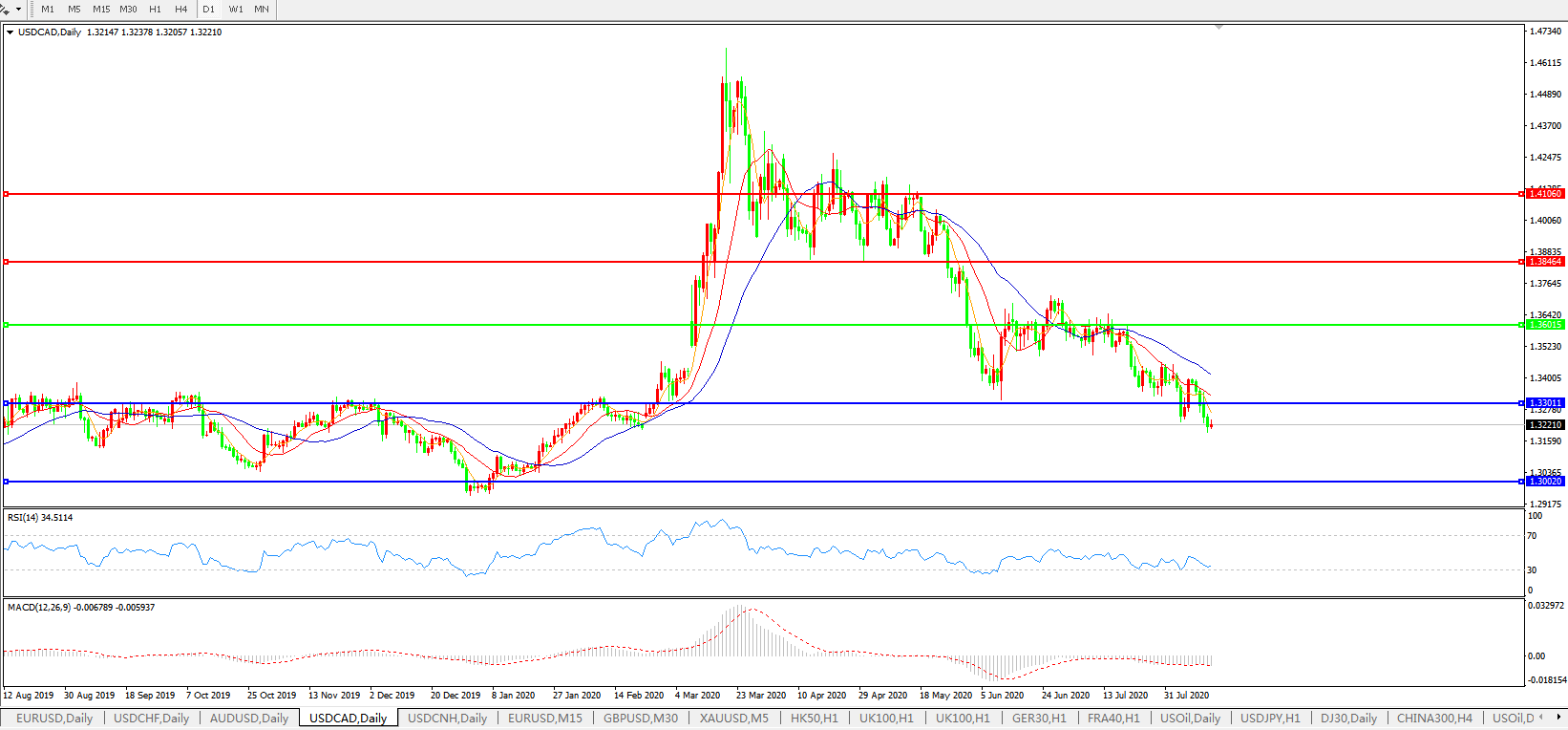 美元兑加元USDCAD 日线图:
