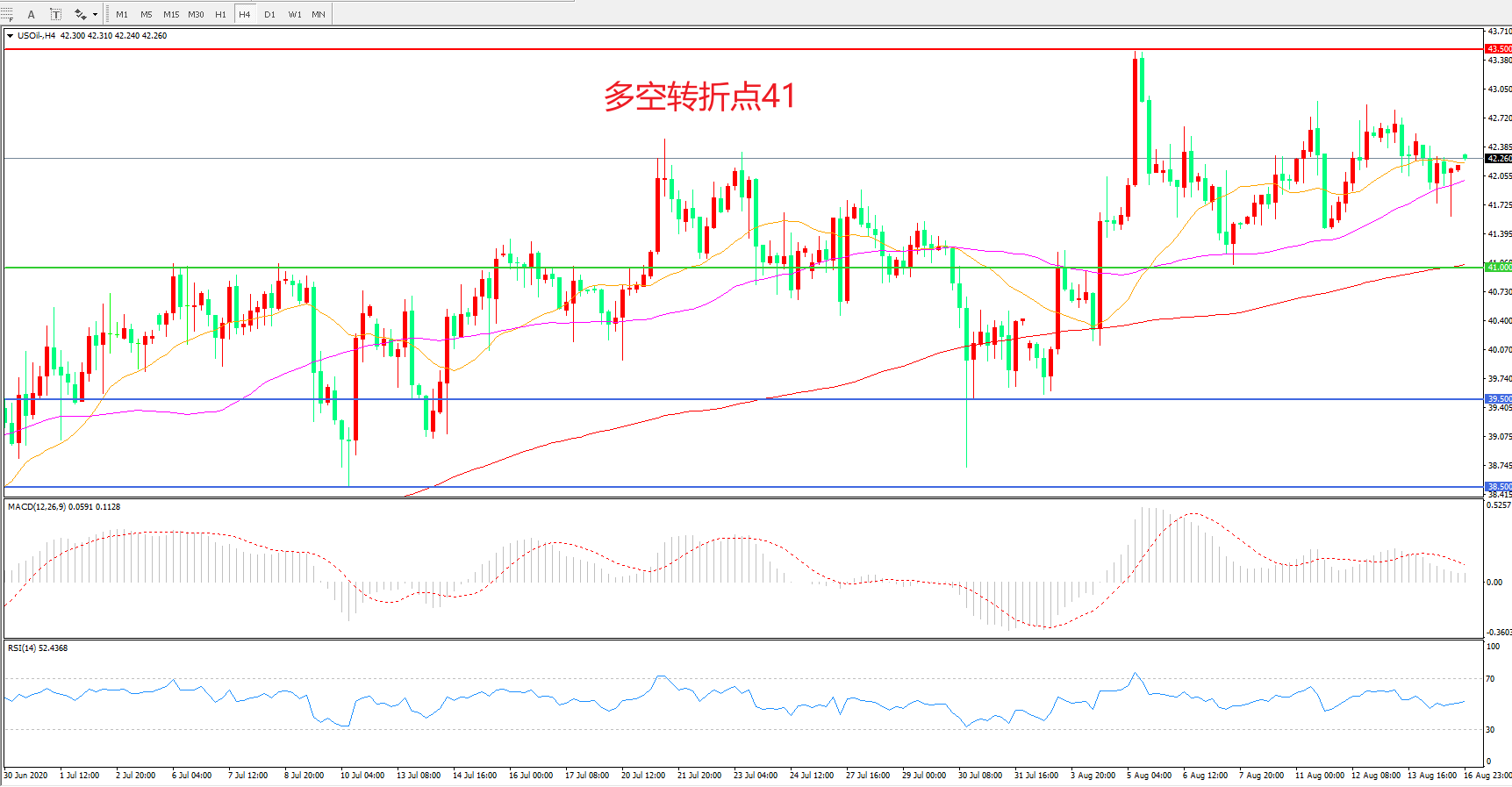 交易策略:在41.00之上看涨,目标43.50 46.00