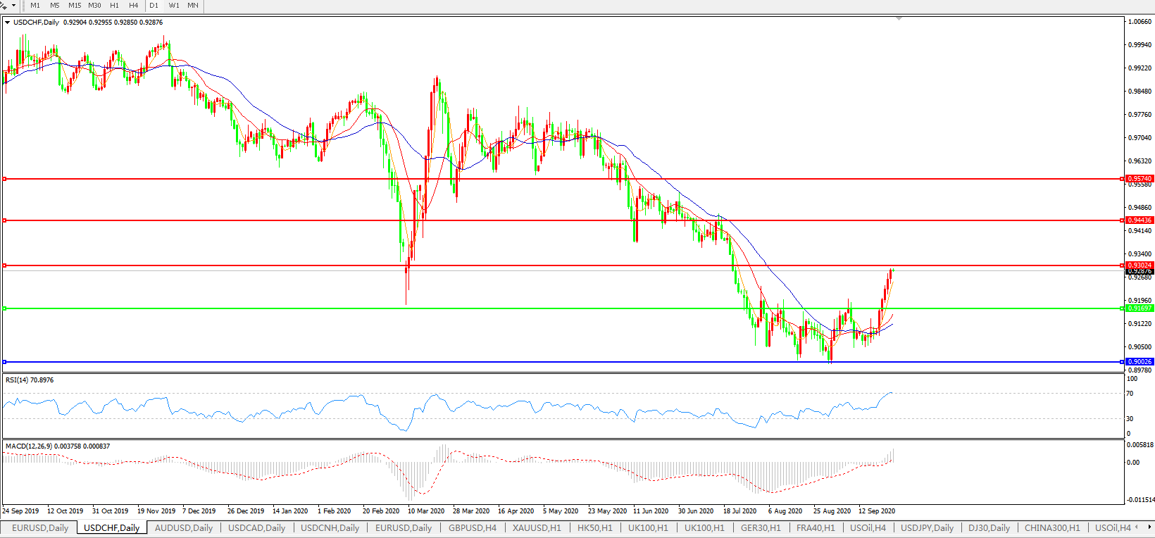 美元兑瑞郎USDCHF 日线图: