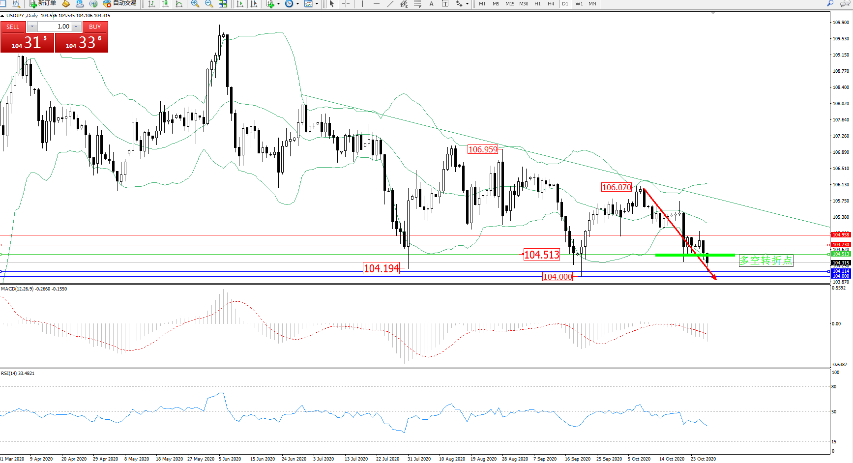 交易策略:104.513下方看跌,目标104.114、104.000