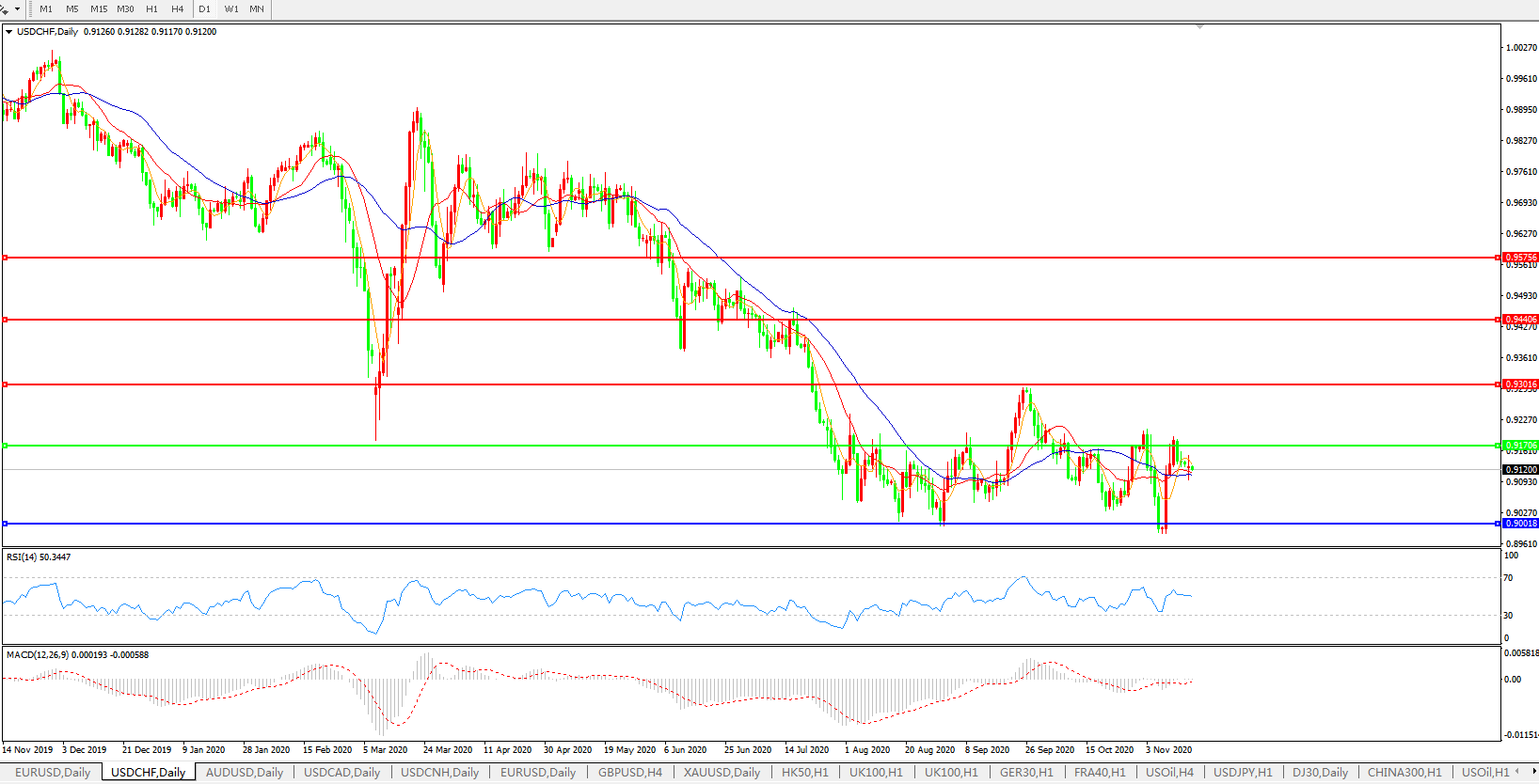美元兑瑞郎USDCHF 日线图: