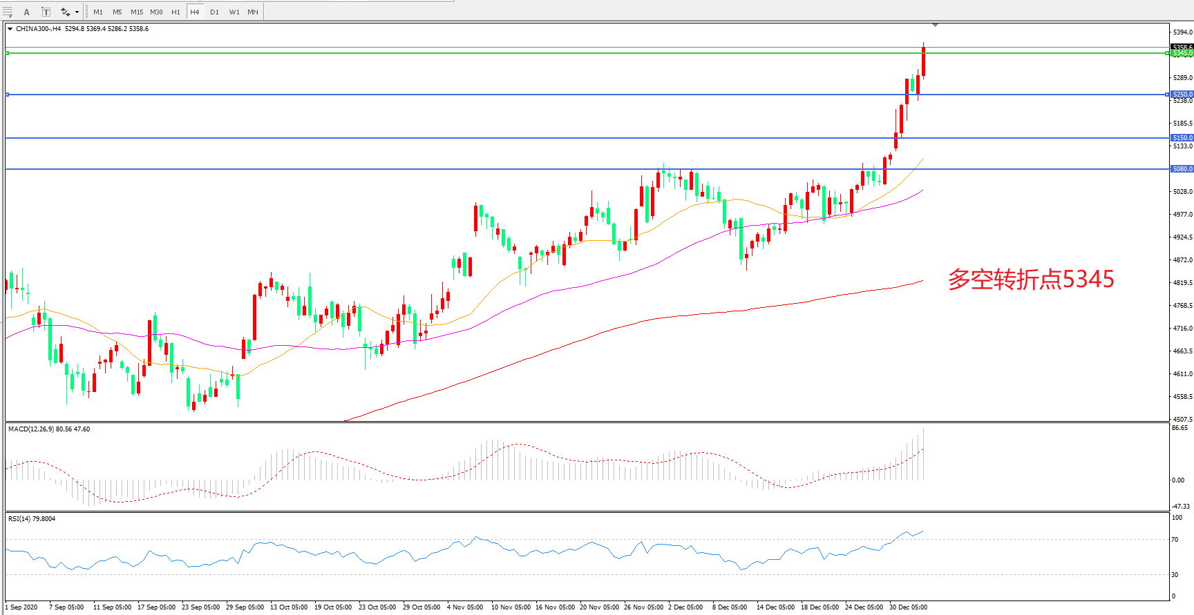 沪深300  CHINA 300   4小时图