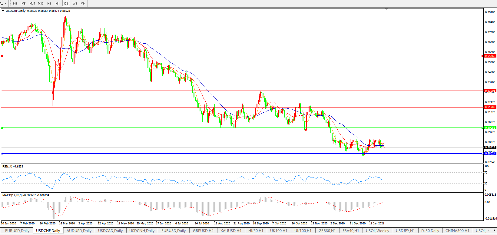 美元兑瑞郎USDCHF 日线图: