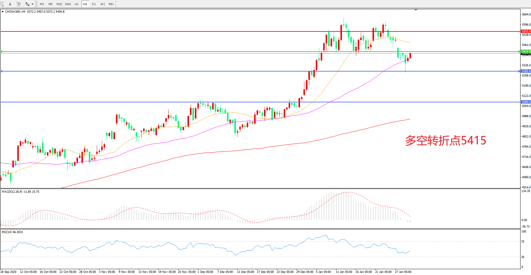 交易策略: 在5415.00之下看跌,目标5285.00 5080.00