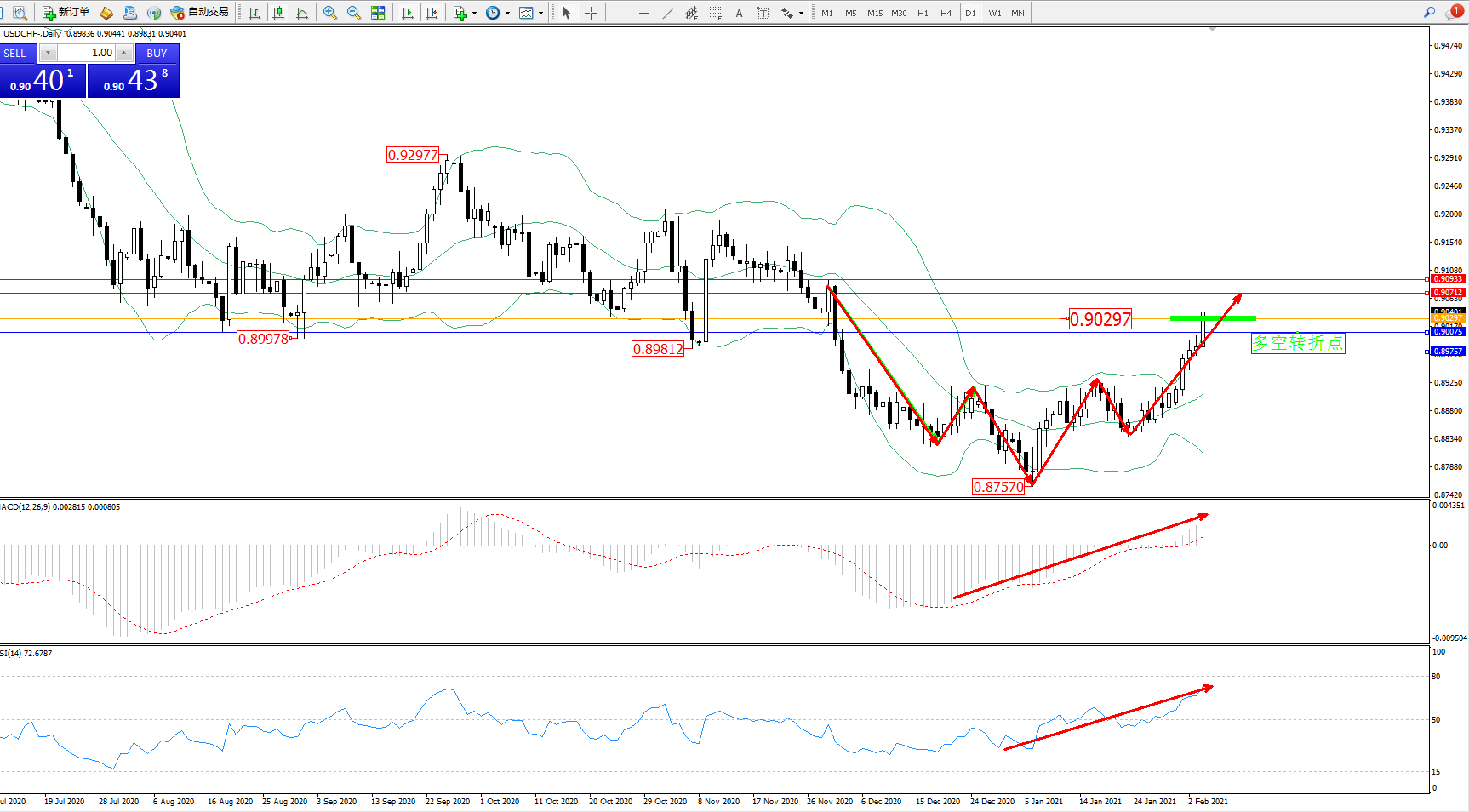 交易策略:0.90297上方看涨,目标0.90712、0.90933