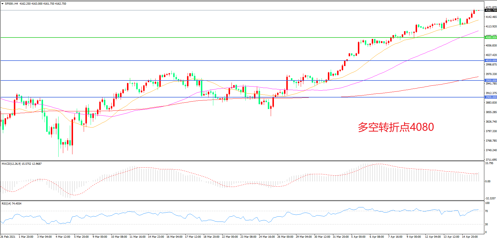 多空转折点:4080.00