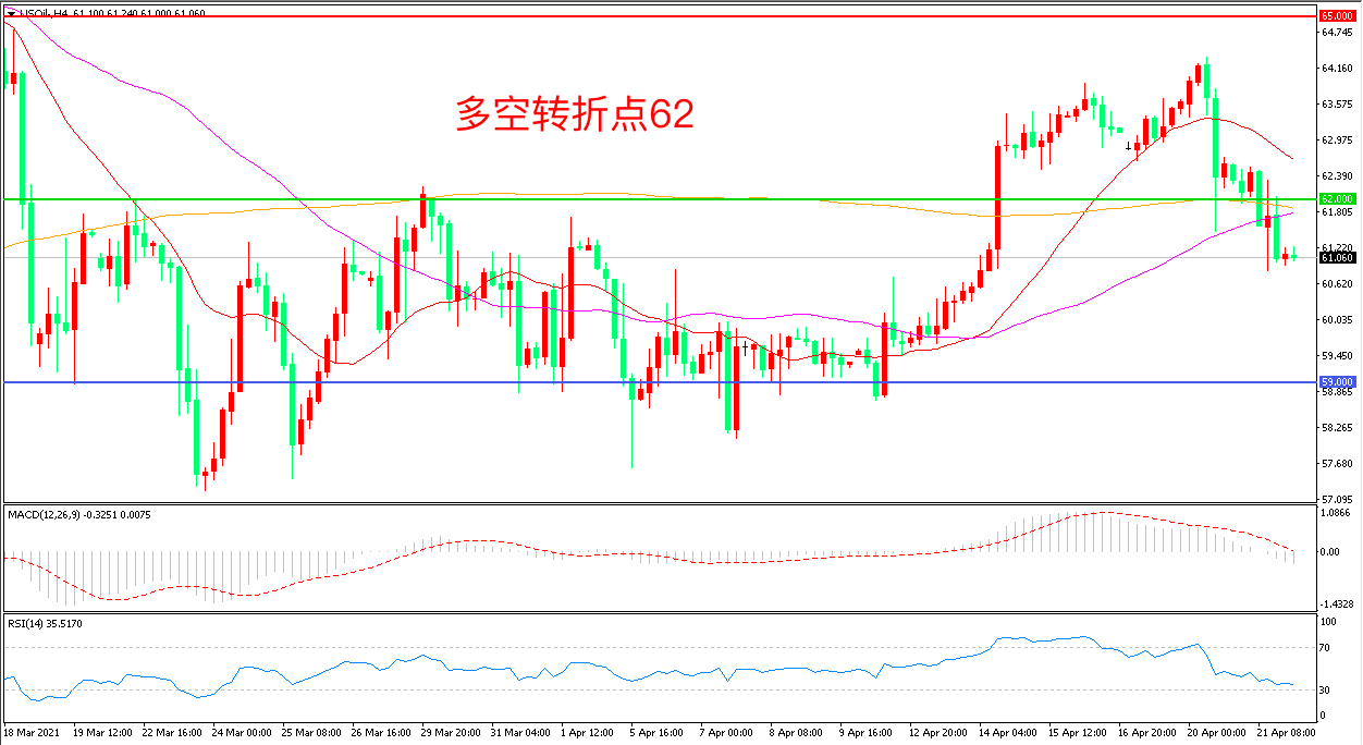 交易策略:在62.00之下看跌,目标59.00 55.00