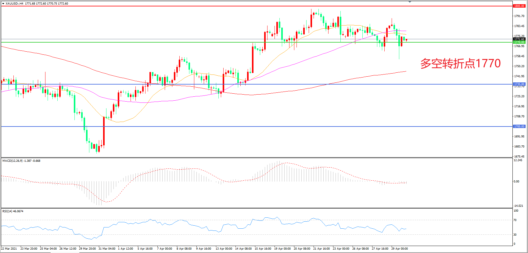 多空转折点:1770.00