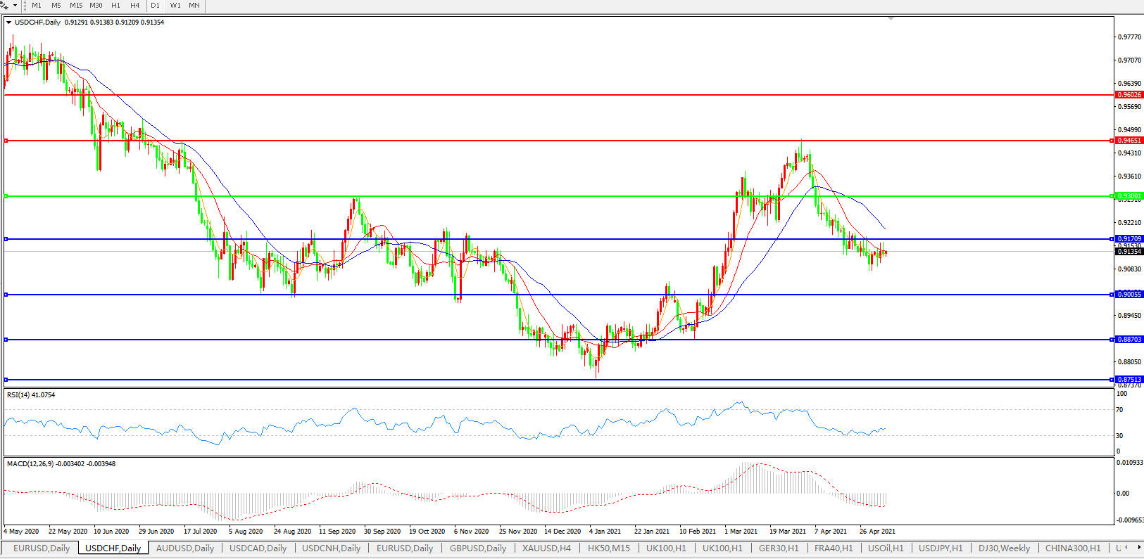美元兑瑞郎USDCHF    日线图: