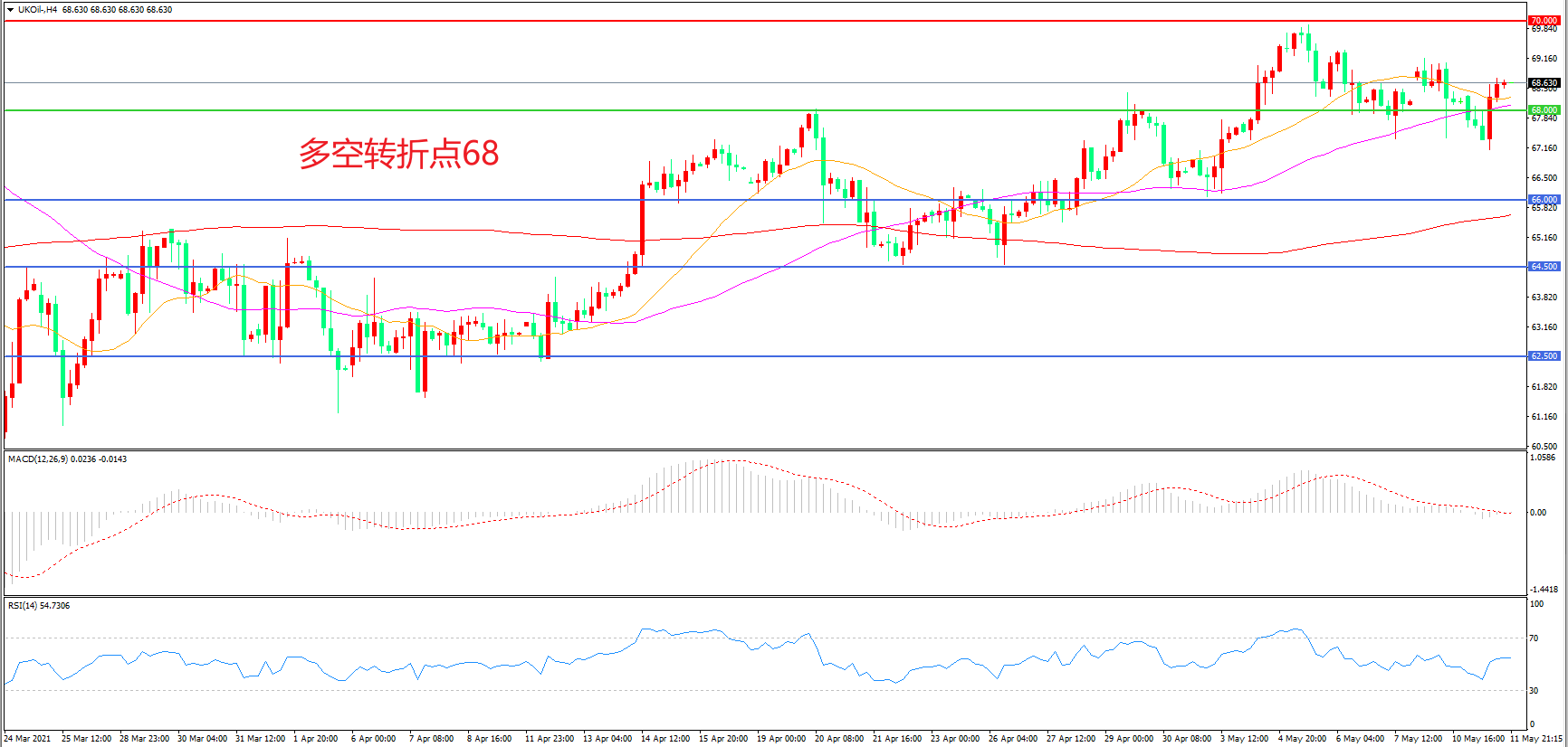 周二(5月11日),原油价格连续三天从日内低点快速拉回,反映出了市场极强的韧性,布伦特原油探底回升,长阳连续拉升后收报68.63美元/桶。在昨日公布的OPEC月报中,OPEC坚持其2021年全球石油需求将强劲复苏的预测,因为中国和美国的增长应对了印度的疫情危机,这一前景支持了该组织逐步缓解减产的计划,也推动了市场情绪的回升。