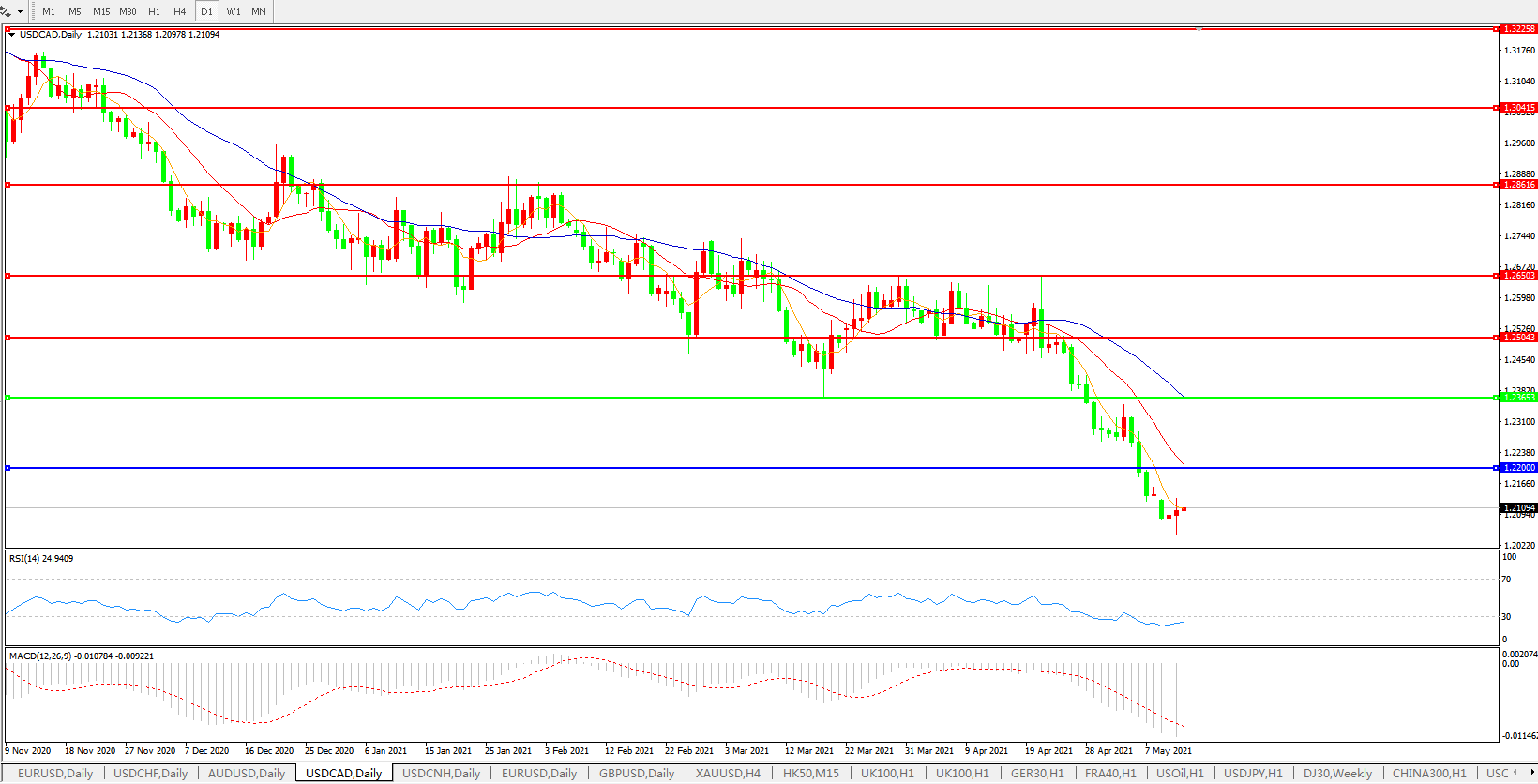 美元兑加元USDCAD 日线图: