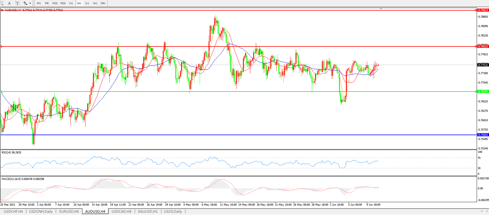 AUDUSD 4小时图: