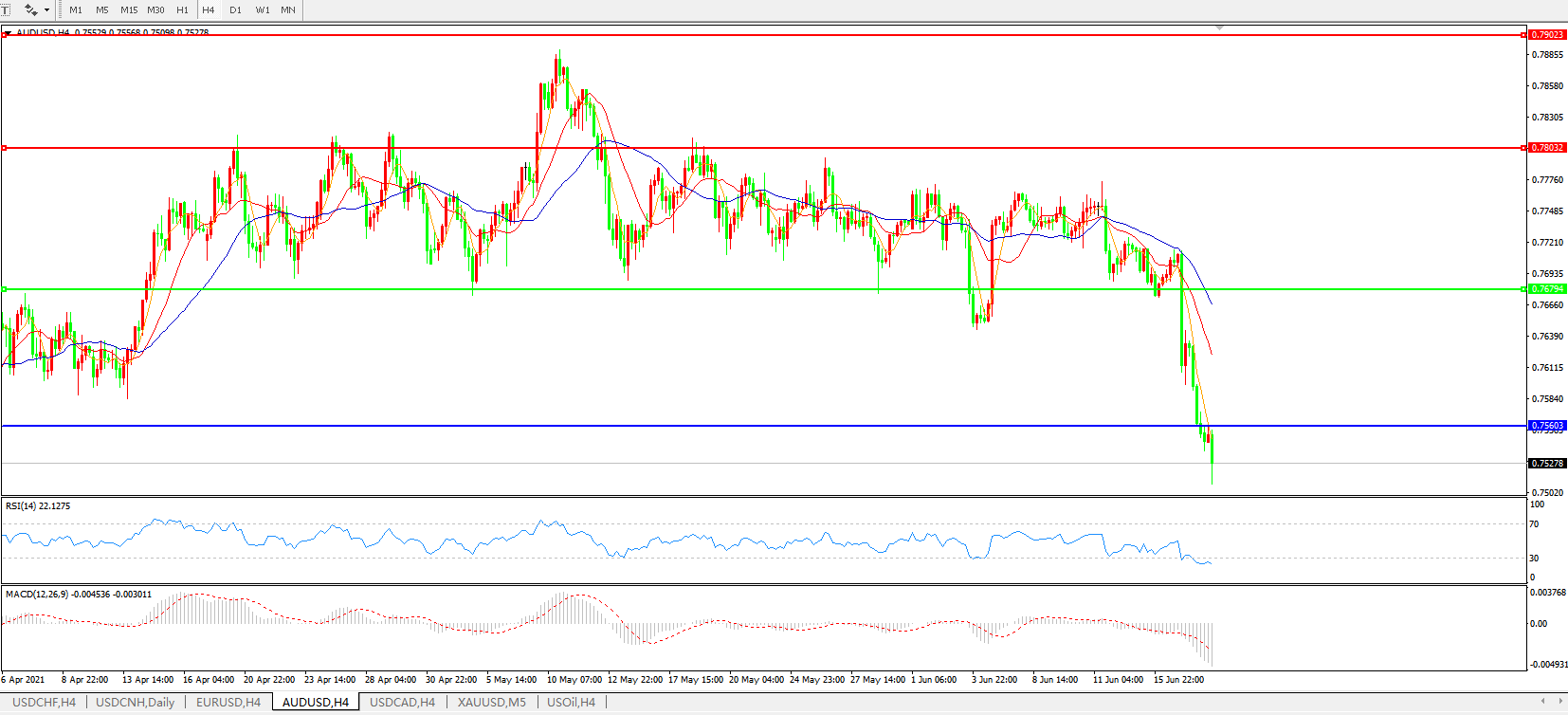 AUDUSD    4小时图: