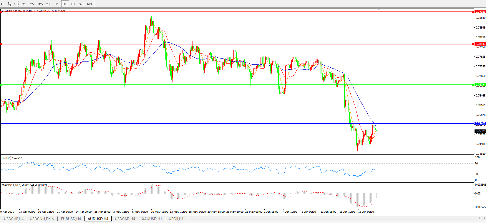 AUDUSD    4小时图: