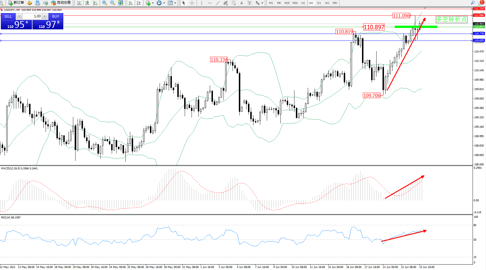 交易策略:110.897上方看涨,目标111.096、111.210
