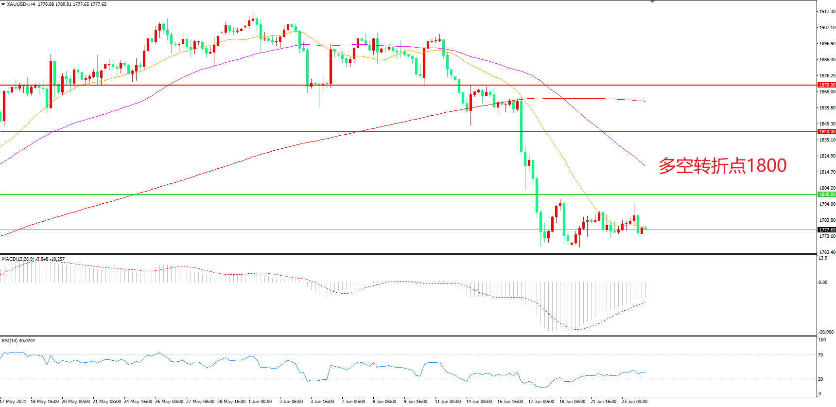 交易策略:在1800.00之下看跌,目标1760.00 1730.00