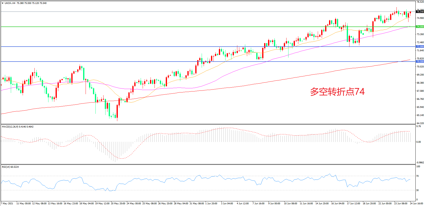 交易策略:在74.00之上看涨,目标77.00    80.00