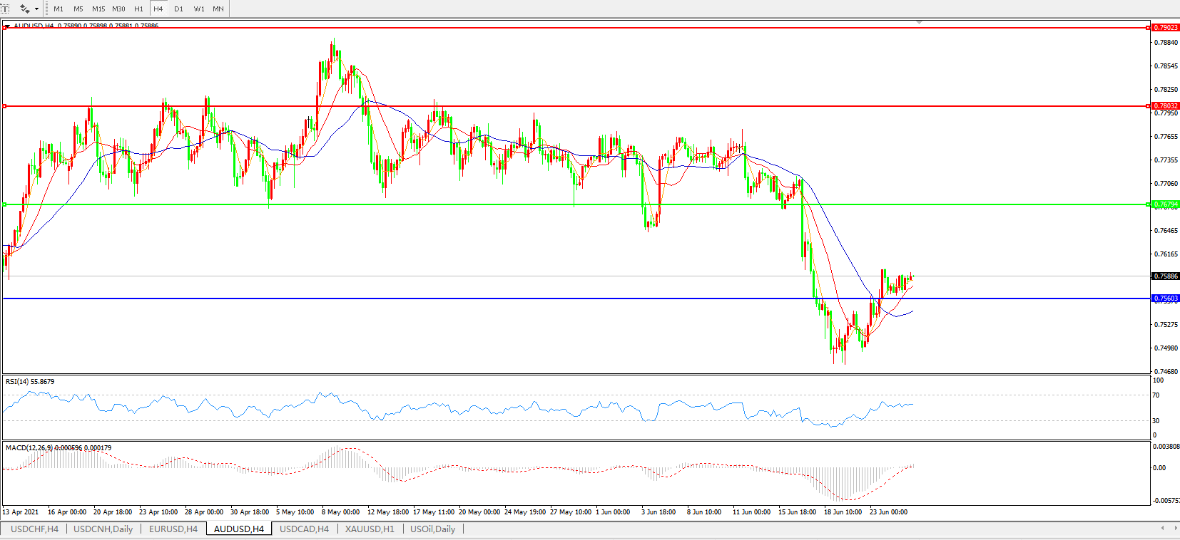 AUDUSD    4小时图: