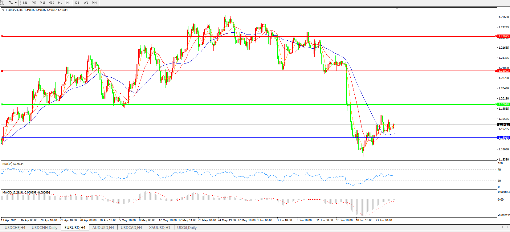 欧元兑美元EURUSD 4小时图: